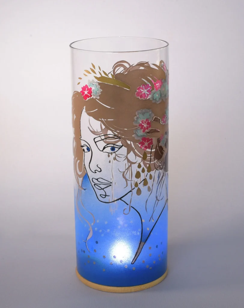 Every piece of art begins as a simple glass cylinder and is transformed into something extraordinary. Through a meticulous layering process, multiple coats of powder are electrostatically applied, heat-cured, and carefully masked with heat-resistant tape to build depth and detail. This technique, developed and refined in-house, allows each Art Glass Lamp to stand as a one-of-a-kind creation—shaped not only by craftsmanship but also by imagination.