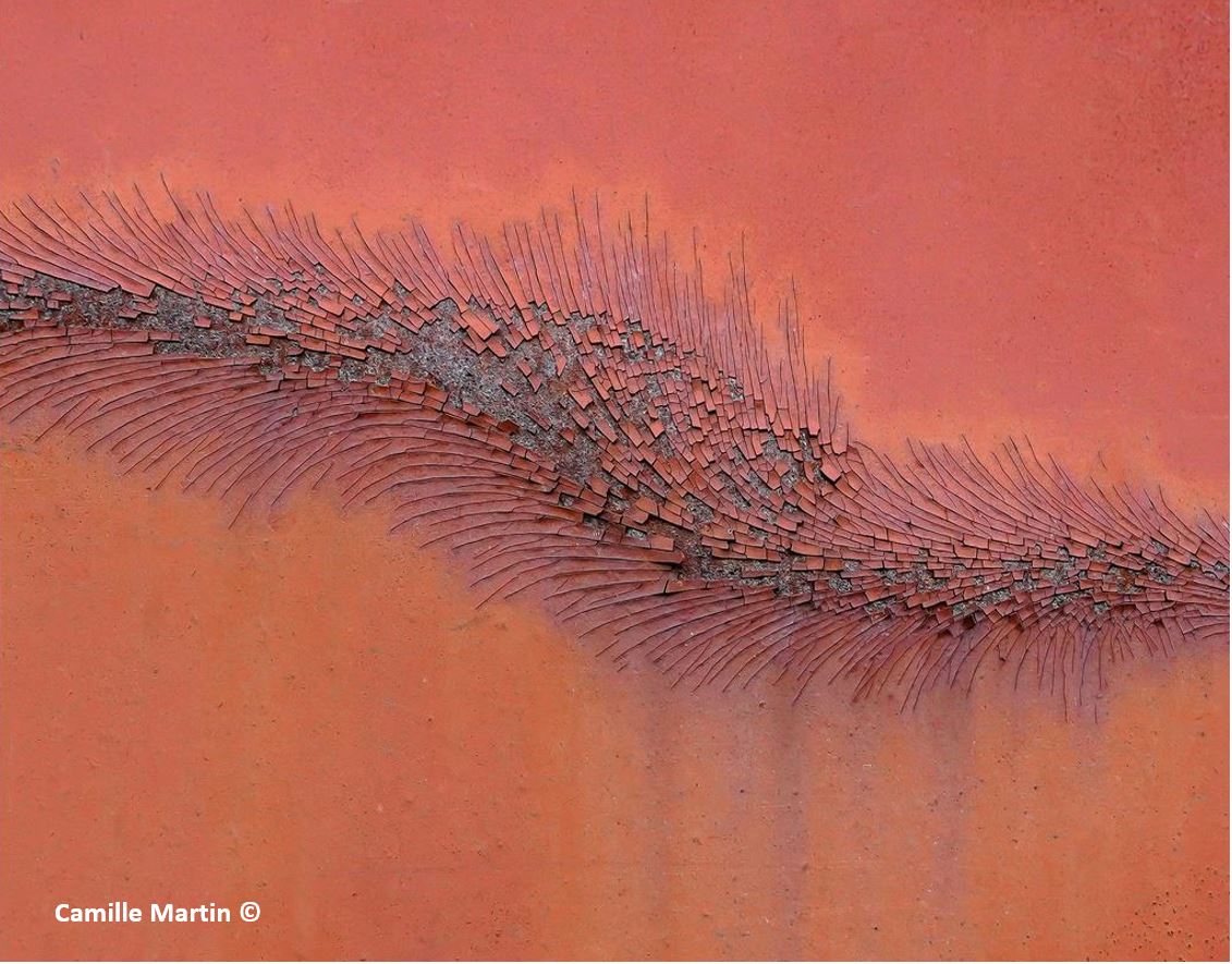 Shown amongst my other photos for this piece, is one by Ms. Camille Martin, TA based artist, poet, photographer. I discovered her work displayed by the “Peeling Paint Appreciation Society.” Like Alice in Wonderland down the rabbit hole, my imagination just tumbled into this image. I applied my typical guidelines; first simplify, then exaggerate. In my accent lamp glass media, the image has no edges. It just flows.